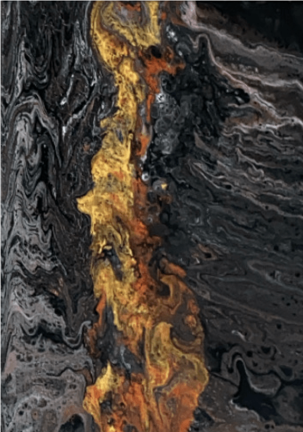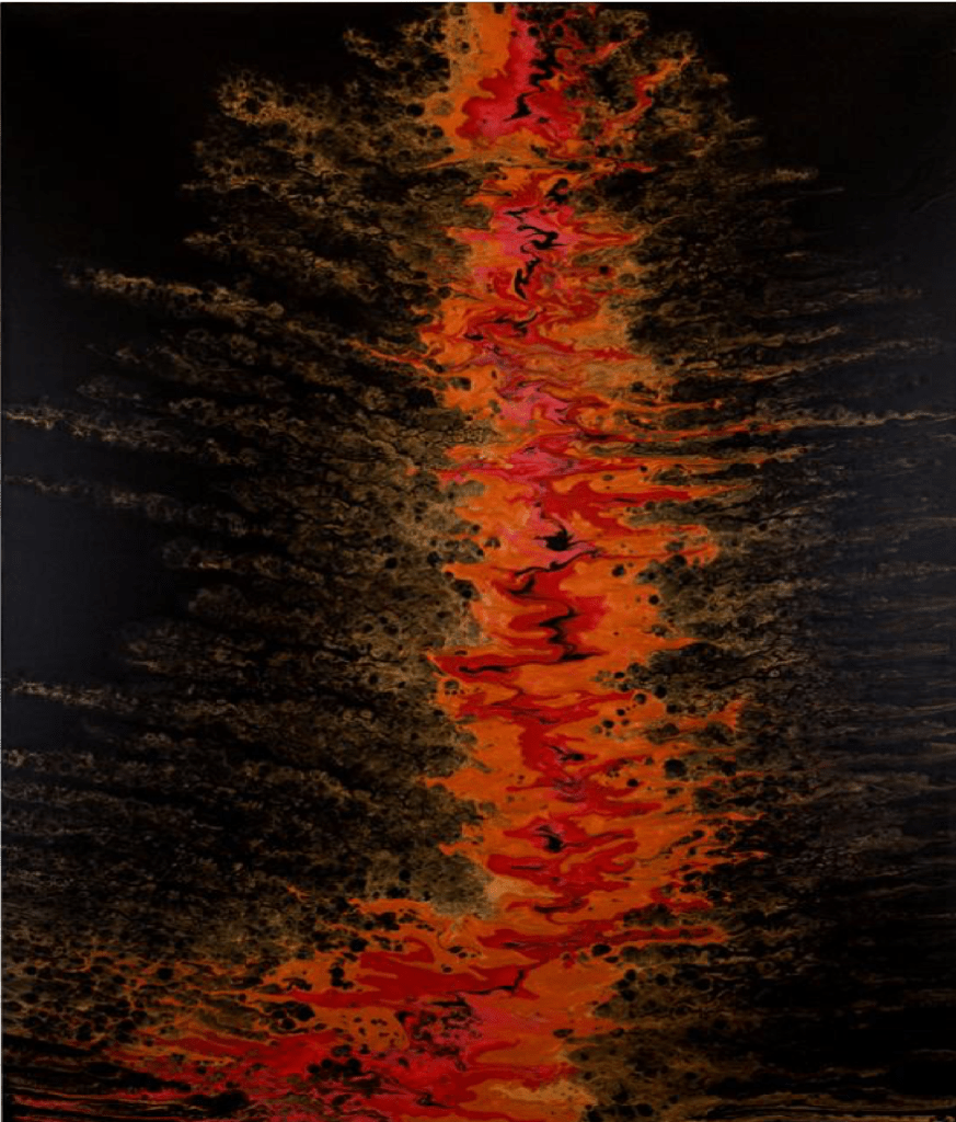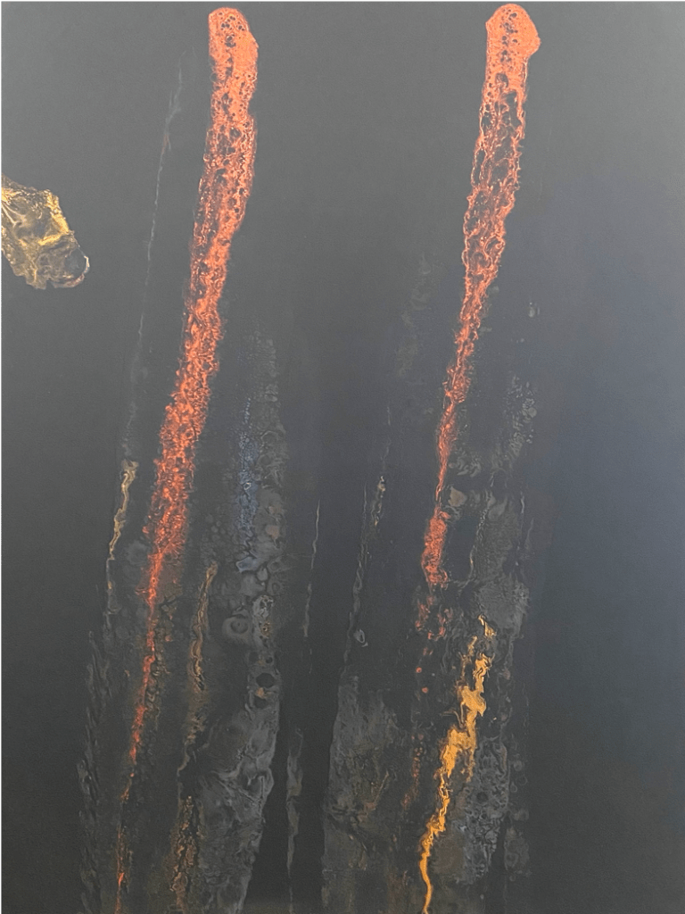 Representación del tiempo con lava. La artista quiso representar la importancia del tiempo y dramatizar la perdida del tiempo con lava. Tiempo perdido, tiempo destruido.